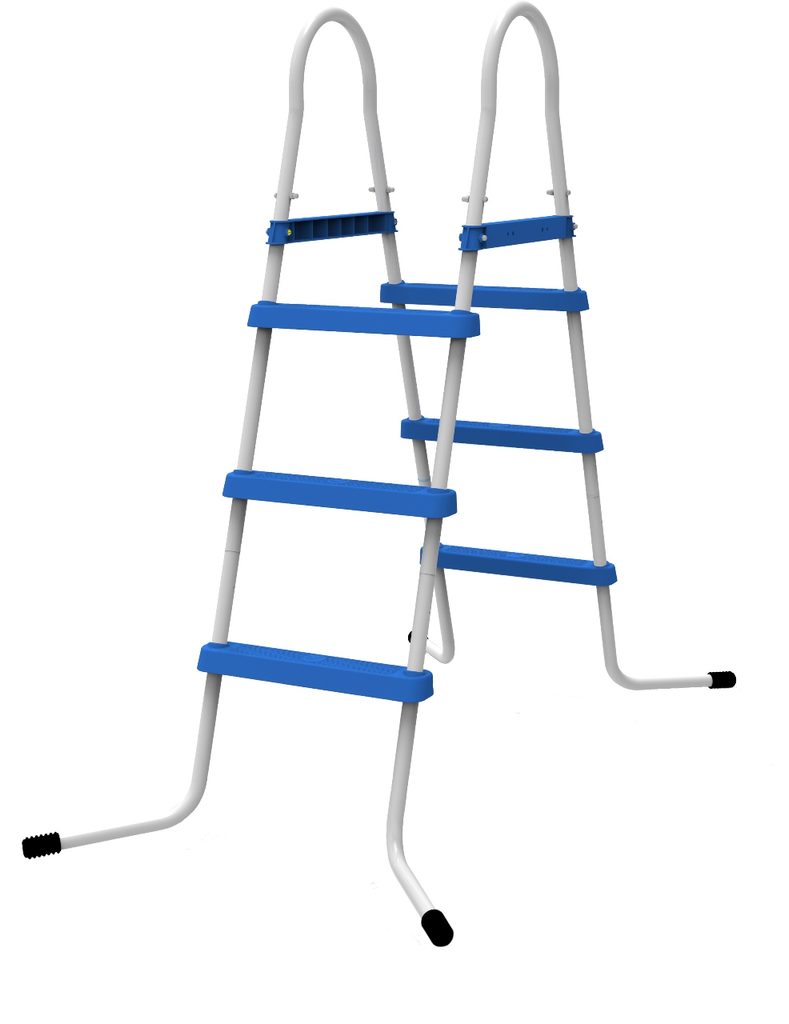 Bazénové schodíky pre bazény s maximálnou výškou okraja 90 cm. Základ je tvorený oceľovým rámom, jednotlivé stupne majú plastové nášľapy odolné proti UV žiareniu a bazénovej chémii.