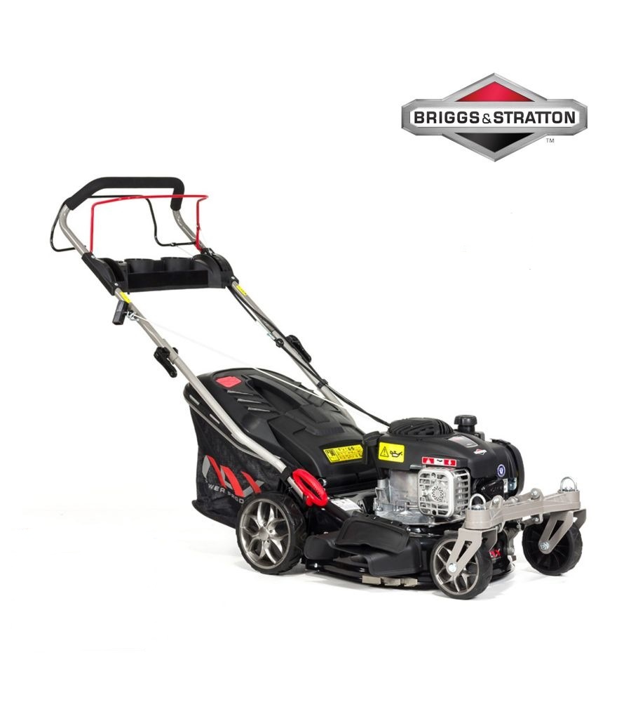 : NacBenzínová kosačka so spoľahlivým a odolným motorom s objemom 125 cm3, spolupráca s výrobcom Briggs& Stratton, bočné a zadné vyhadzovanie, funkcia mulčovania, systém umývania vnútorného plášťa, nastaviteľná výška kosenia.