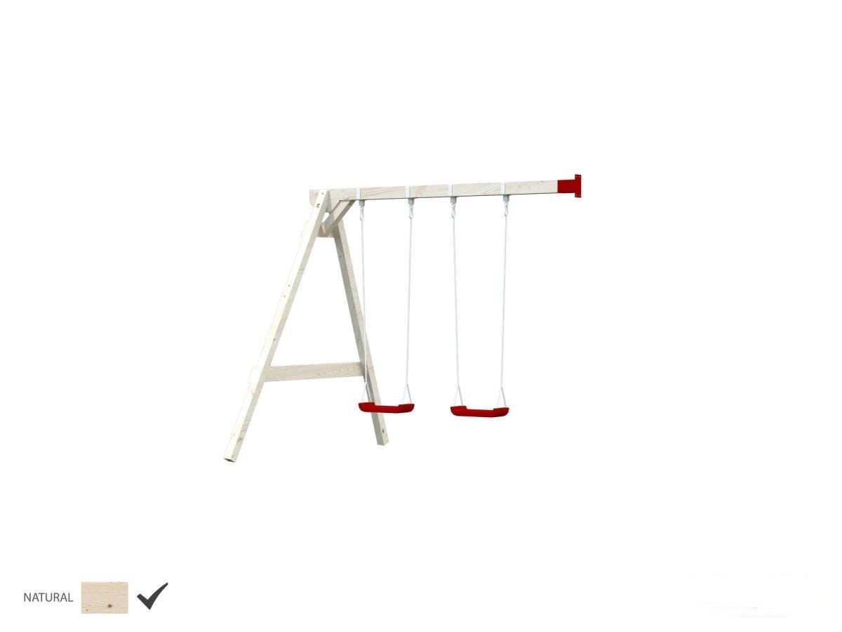 : PalmakoHojdací Swing Modul je praktické príslušenstvo pre detské ihriská, ktoré možno pripojiť k hracej veži alebo upevniť k stene. Konštrukcia je vyrobená z tlakovo impregnovaného severského smreka a je určená na celoročné vonkajšie použitie. Set obsahuje 2 hojdačky, háky a spojovací materiál. Spĺňa bezpečnostné normy EN-71 a je vhodný pre deti od 3 rokov. Na inštaláciu je potrebný mäkký podklad a ukotvenie do zeme. Drevený materiál je nutné ošetriť farbou alebo lazúrou.