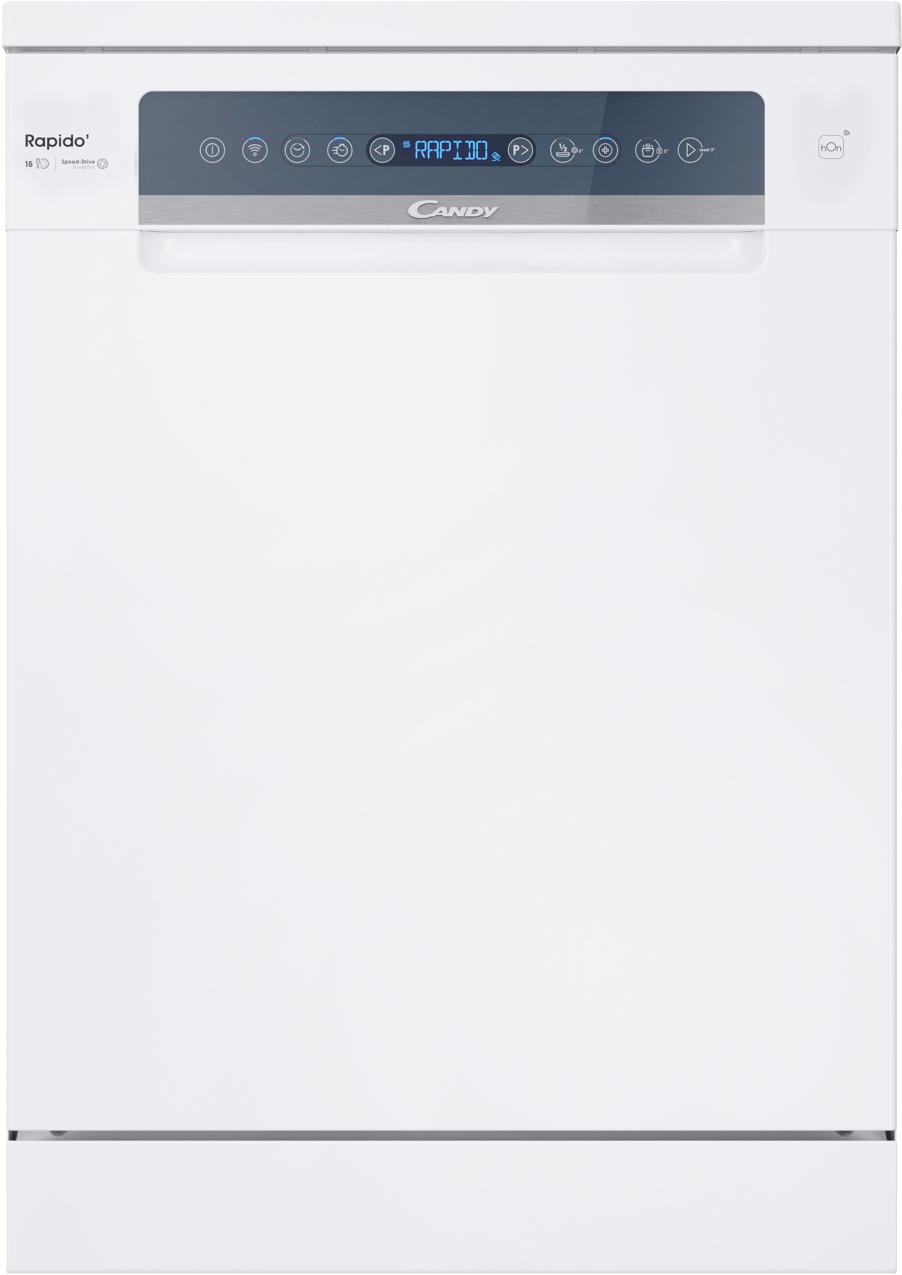 : CandyUmývačka riadu Candy CF 6B2S3PSW s energetickou triedou B, kapacitou 16 súprav riadu a smart ovládaním cez mobil. Ponúka 10 programov, automatické otváranie dverí a maximálnu hlučnosť 42 dB. Spotreba energie je 66 kWh na 100 cyklov a spotreba vody 9,5 l na umývací cyklus. Rozmery umývačky riadu sú 85x59,7x59,8 cm.