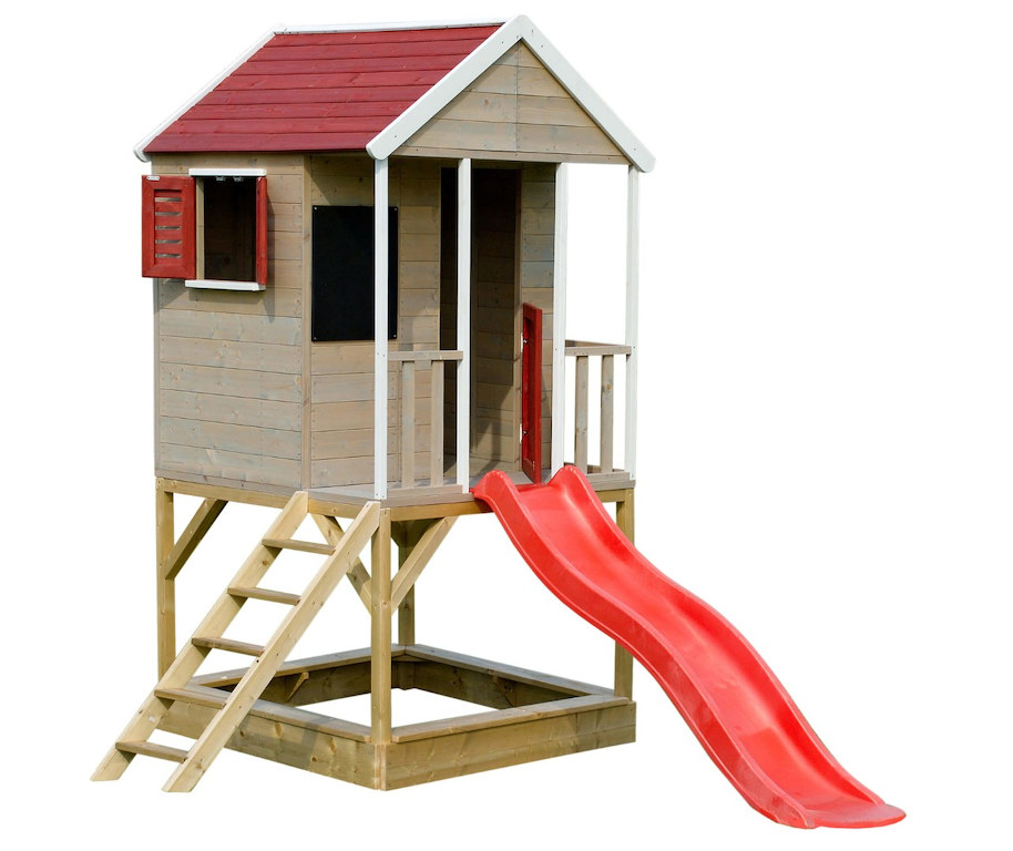 Detský drevený domček Veranda so šmykľavkou
