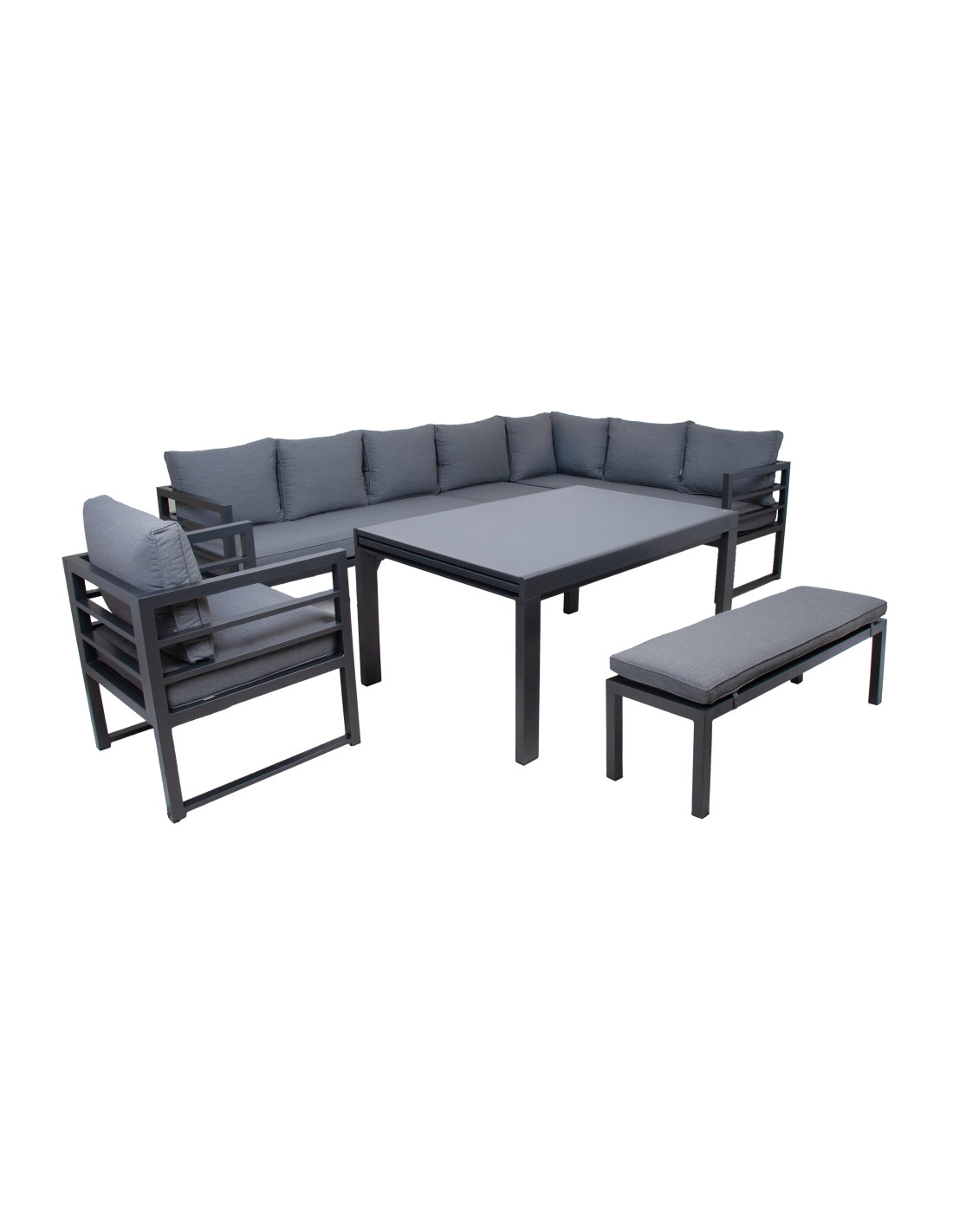 : DopplerLuxusná záhradná súprava, ktorá môže byť vonku po celý rok. Konštrukcia je vyrobená z ľahkého, odolného a bezúdržbového hliníka.