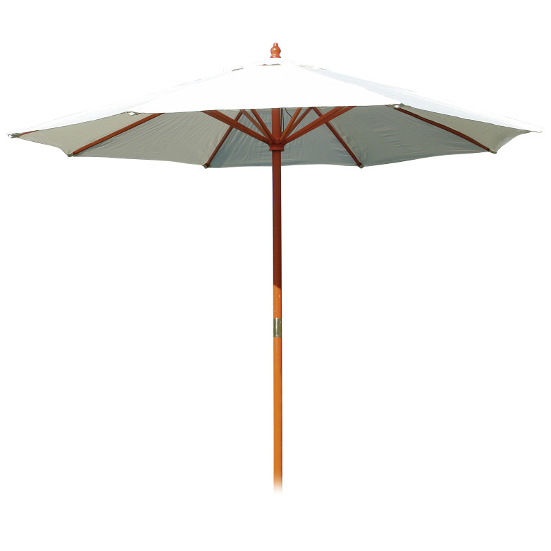 Pekný záhradný slnečník s priemerom 2,8 m. Všetky nosné časti sú vyrobené z masívneho dreva s mosadznými aplikáciami. 2-dielny, zo 48 mm tvrdého dreva, lakovaný v prírodnej farbe. S lankovým tiahlom na otváranie a zatváranie. Poťah zo syntetického vlákna, odolný voči UV-žiareniu.