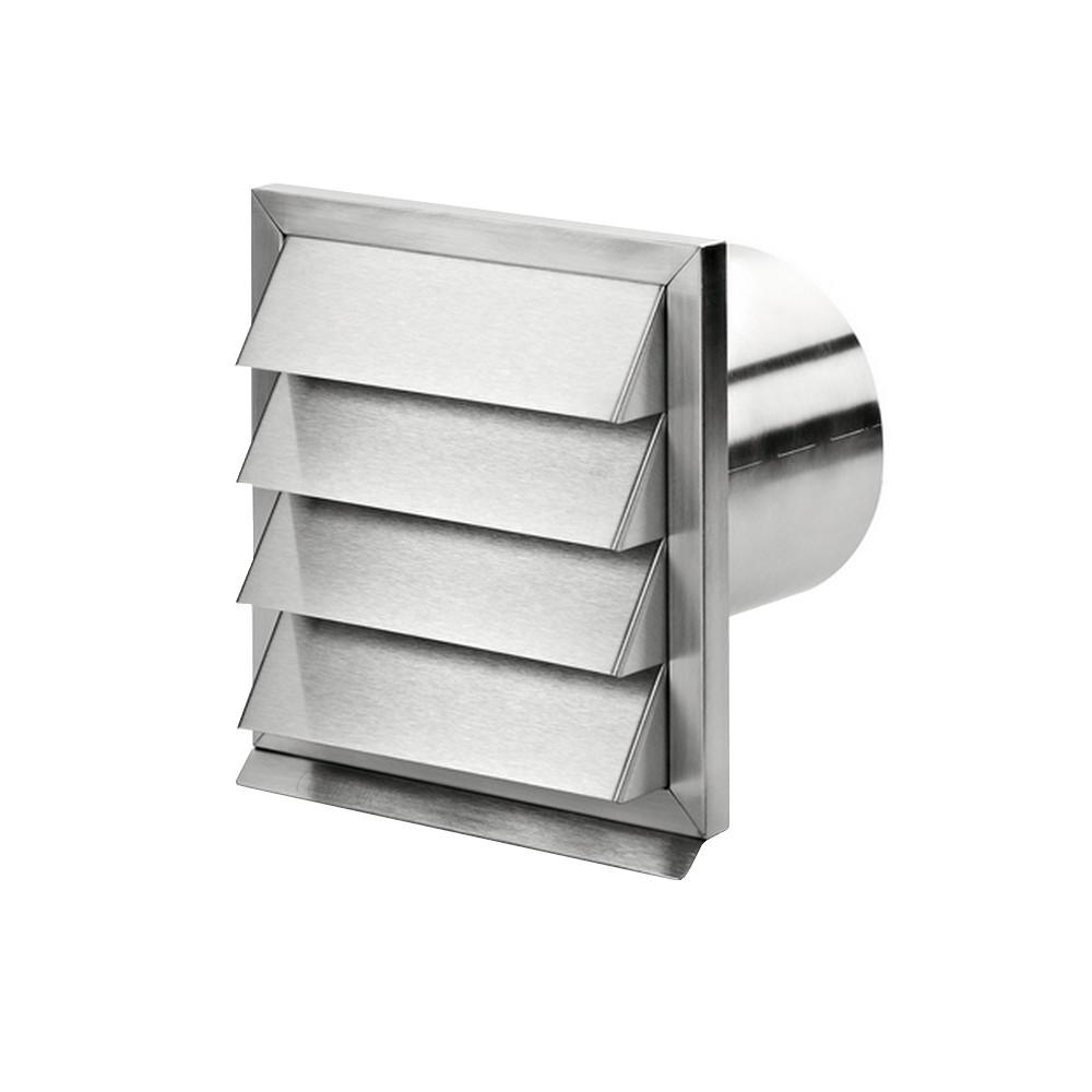 157.72 Vonkajšia prietoková mriežka COMPAIR® E-Jal 150 s rozmermi 190 x 190 mm so spätnou klapkou je určená na pripojenie na kruhové potrubie s priemerom 150 mm, hĺbka pripojenia je 145 mm.V spodnej časti mriežky je praktická lišta, ktorá zabraňuje znečisteniu fasády kondenzátom.