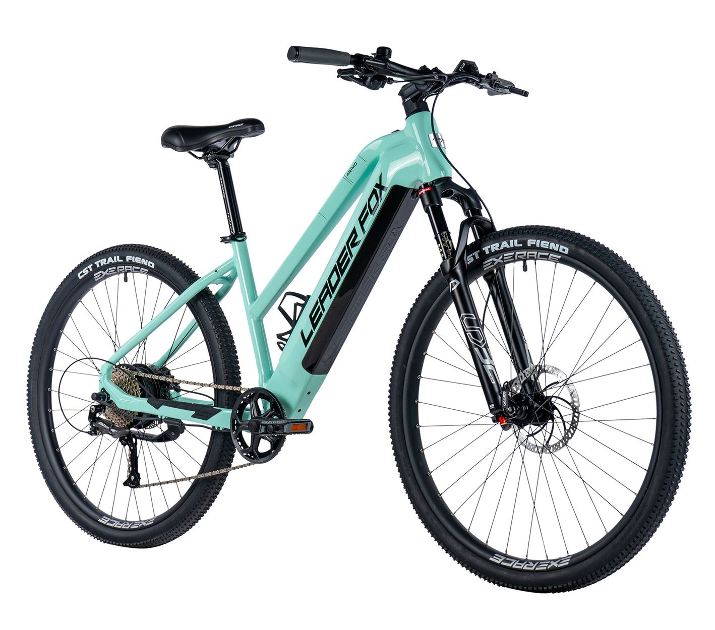: Leader FoxDámske elektrobicykel, rám 17,5", veľkosť kolies 29", 9 rýchlostí, odporúčaná výška cyklistu 160-170 cm, kotúčové hydraulické brzdy, nosnosť 110 kg, farba zelená. Dojazd až 110 km.