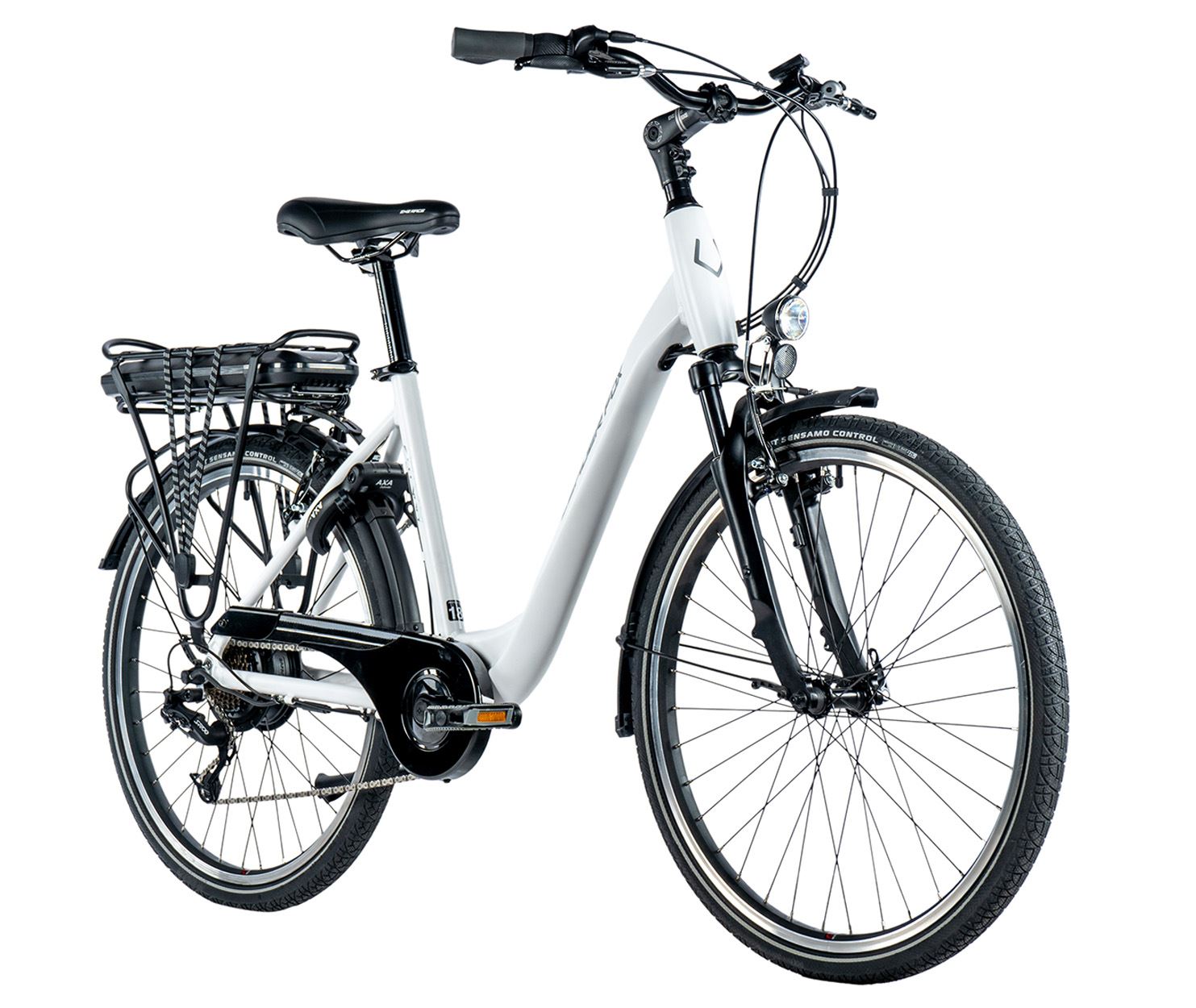 : Leader FoxElektrobicykel, rám 18", veľkosť kolies 26", 7 rýchlostí, odporúčaná výška cyklistu 170–180 cm, ráfikové brzdy, nosnosť 120 kg, farba biela.