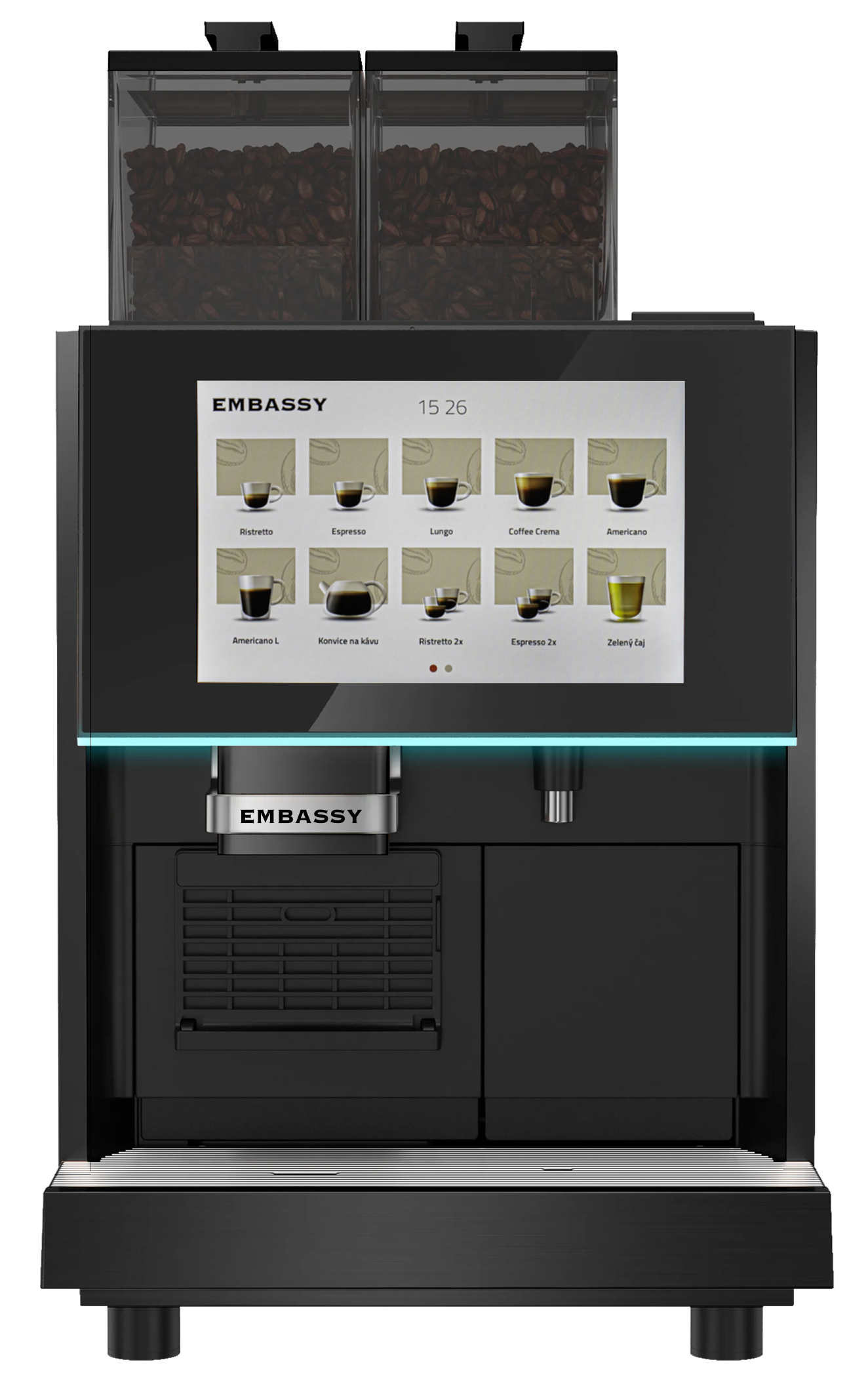 : EmbassyEmbassy Bogota je profesionální automatický kávovar pro přípravu 200 káv denně. Je vybaven připojením na vodovodní řád, čtyřlitrovou vodní nádržkou, dvěma mlýnky a automatickým mléčným systémem pro tvorbu mikropěny o teplotě až 70 °C. Kávovar je kompatibilní s platebními systémy, jeho ovládání probíhá pomocí desetipalcového dotykového displeje, a jeho rozhraní je lokalizováno do českého jazyka.