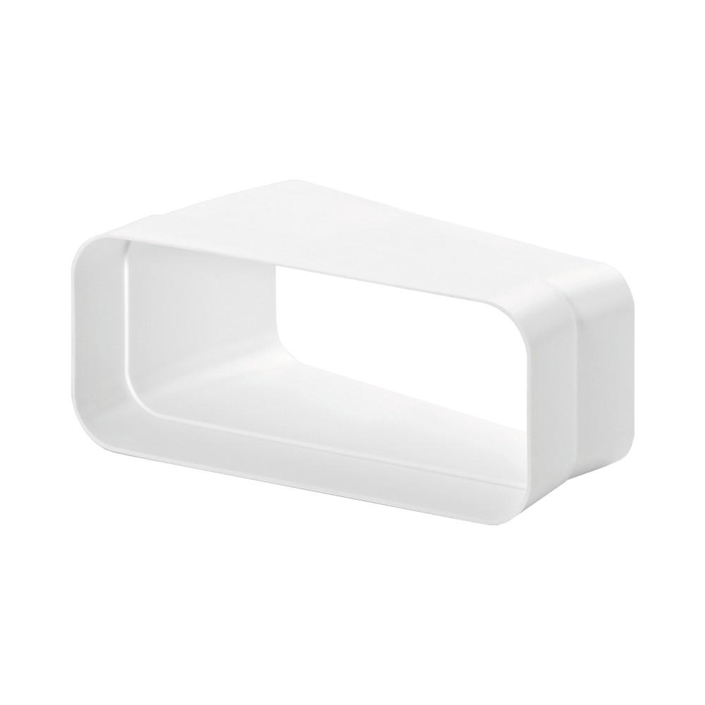 17.72 Horizontálny 15° oblúk potrubia COMPAIR® flow F-RBH 150 s jednostranne tvarovanou manžetou slúži ako spojovací prvok na optimálne prispôsobenie prietoku vetracieho systému podmienkam stavby na mieste. Tento tvarovaný diel je prispôsobený požiadavkám vodiacej techniky integrovanej do plochých potrubí, aby sa naplno využila jej účinnosť.