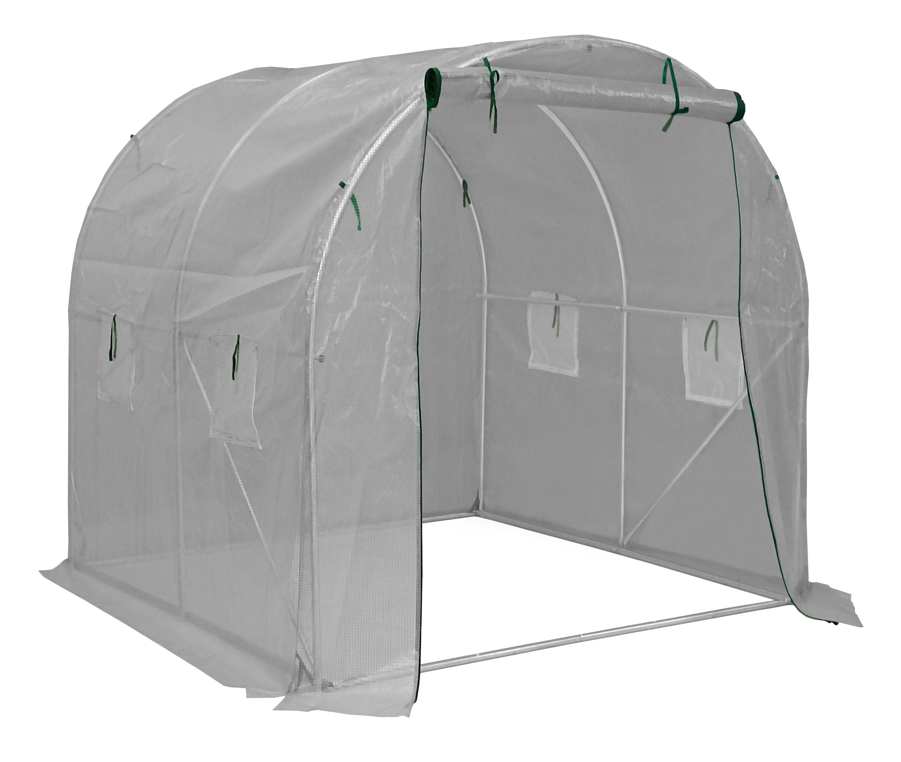 : G21Záhradný fóliovník so stabilnou oceľovou pozinkovanou konštrukciou, kvalitná zosilnená polyetylénová (PE) fólia, čelná stena so vstupným otvorom so šírkou 120 cm, 4 vetracie okná, 4 kotviace lanká a kolíky, rolovací vchod na zips.