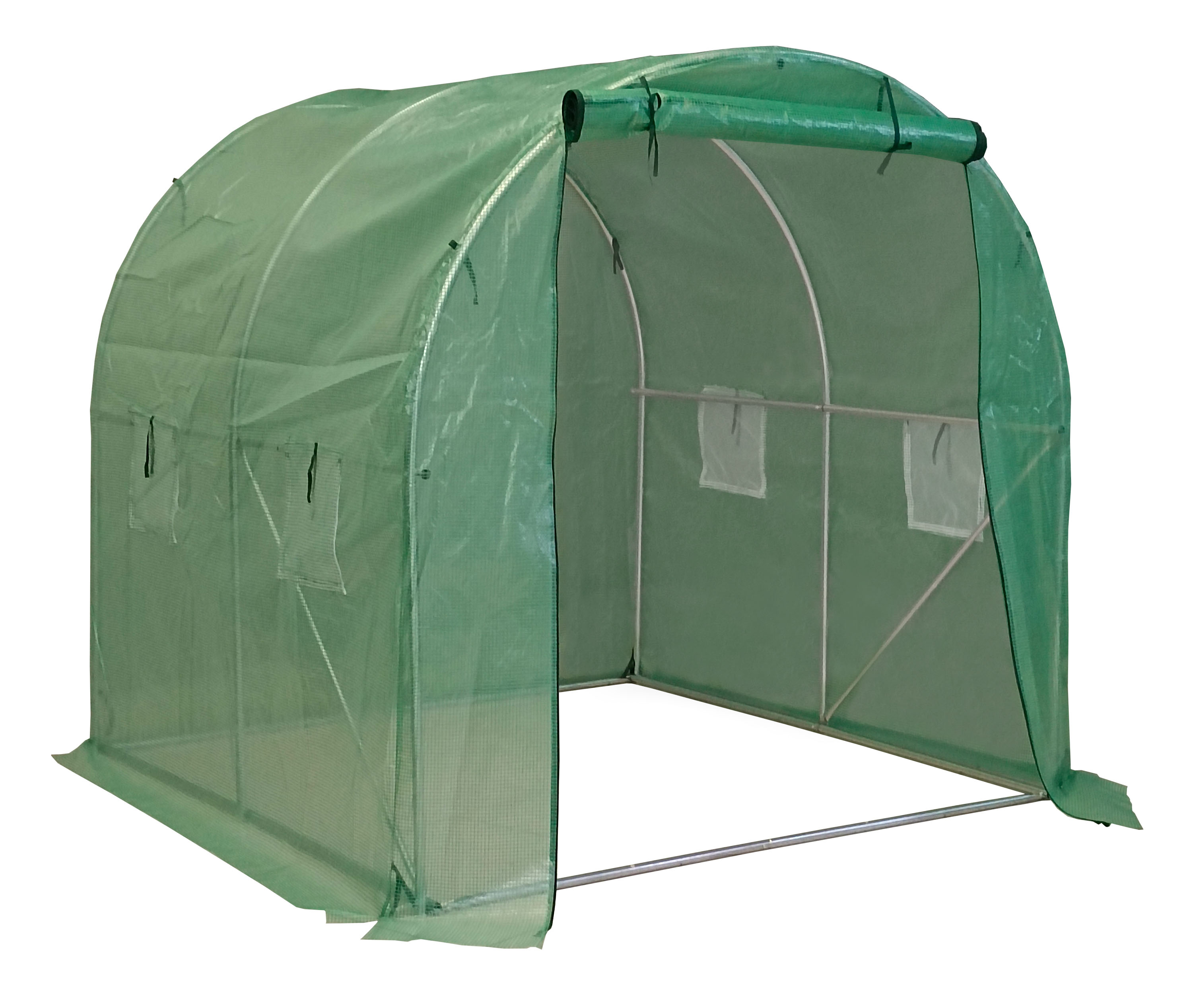 : G21Záhradný fóliovník so stabilnou oceľovou pozinkovanou konštrukciou, kvalitná zosilnená polyetylénová (PE) fólia, čelná stena so vstupným otvorom so šírkou 120 cm, 4 vetracie okná, 4 kotviace lanká a kolíky, rolovací vchod na zips.