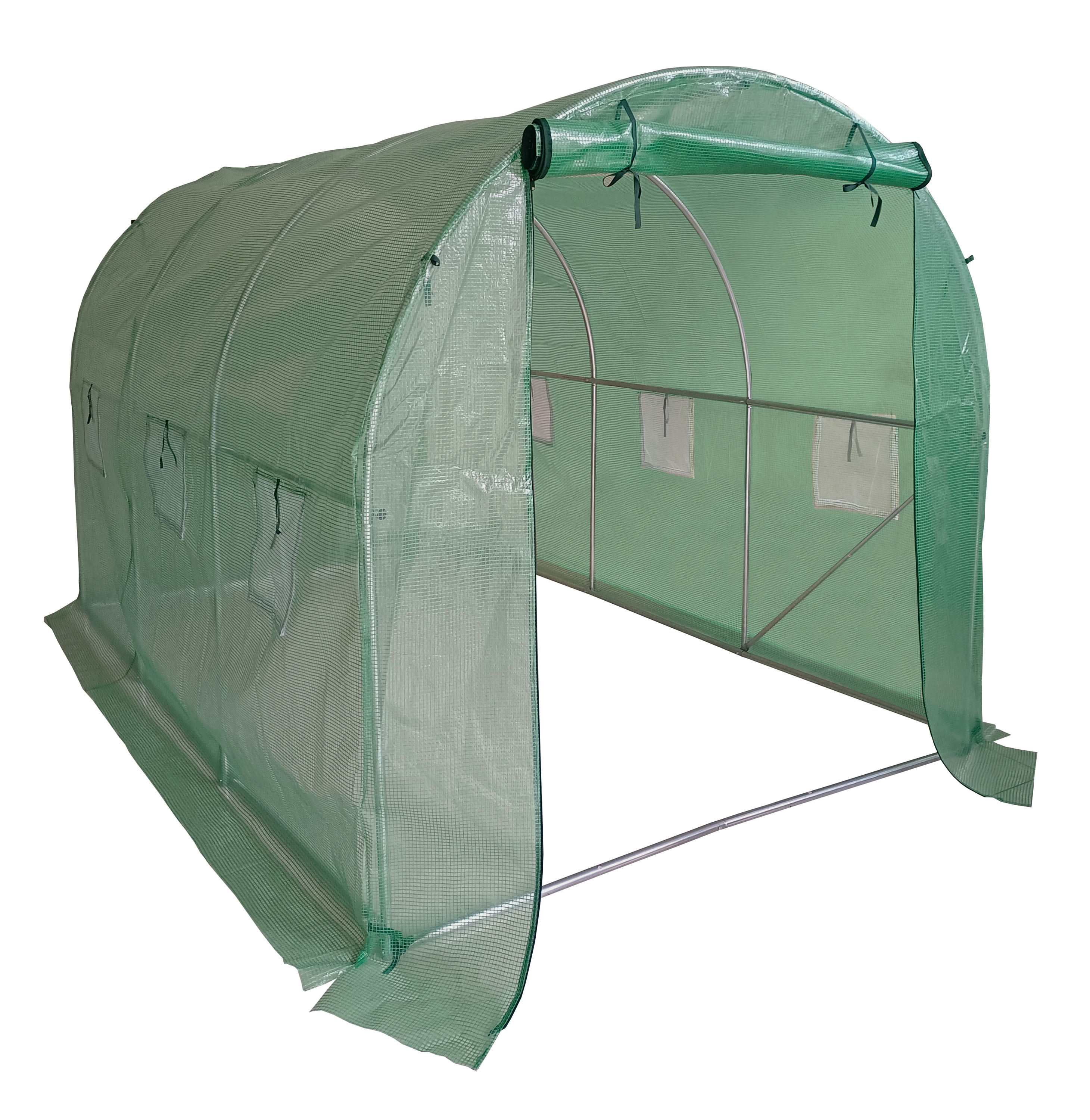 : G21Záhradný fóliovník so stabilnou oceľovou pozinkovanou konštrukciou, kvalitná zosilnená polyetylénová (PE) fólia, čelná stena so vstupným otvorom so šírkou 120 cm, 6 vetracích okien, 4 kotviace lanká a kolíky, rolovací vchod na zips.