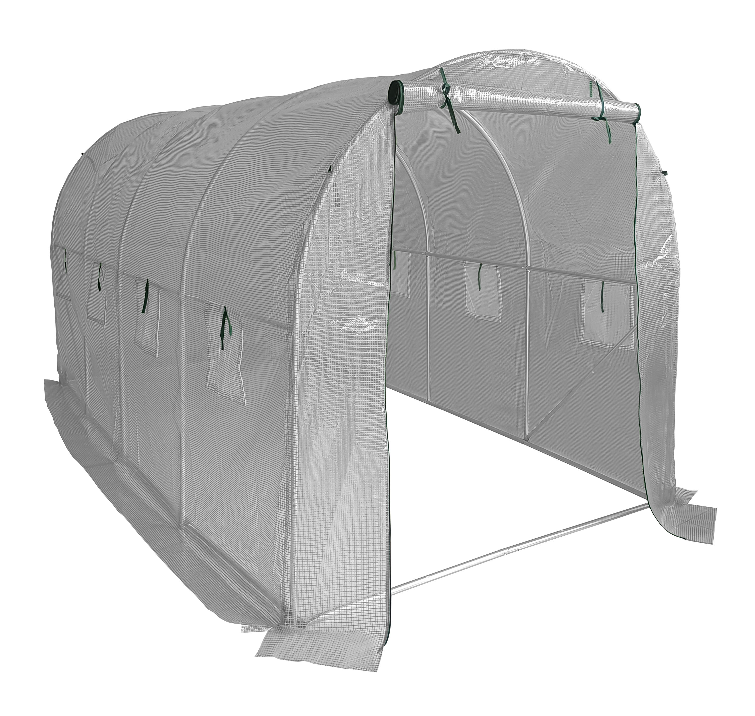 : G21Záhradný fóliovník so stabilnou oceľovou pozinkovanou konštrukciou, kvalitná zosilnená polyetylénová (PE) fólia, čelná stena so vstupným otvorom so šírkou 120 cm, 8 vetracích okien, 4 kotviace lanká a kolíky, rolovací vchod na zips.