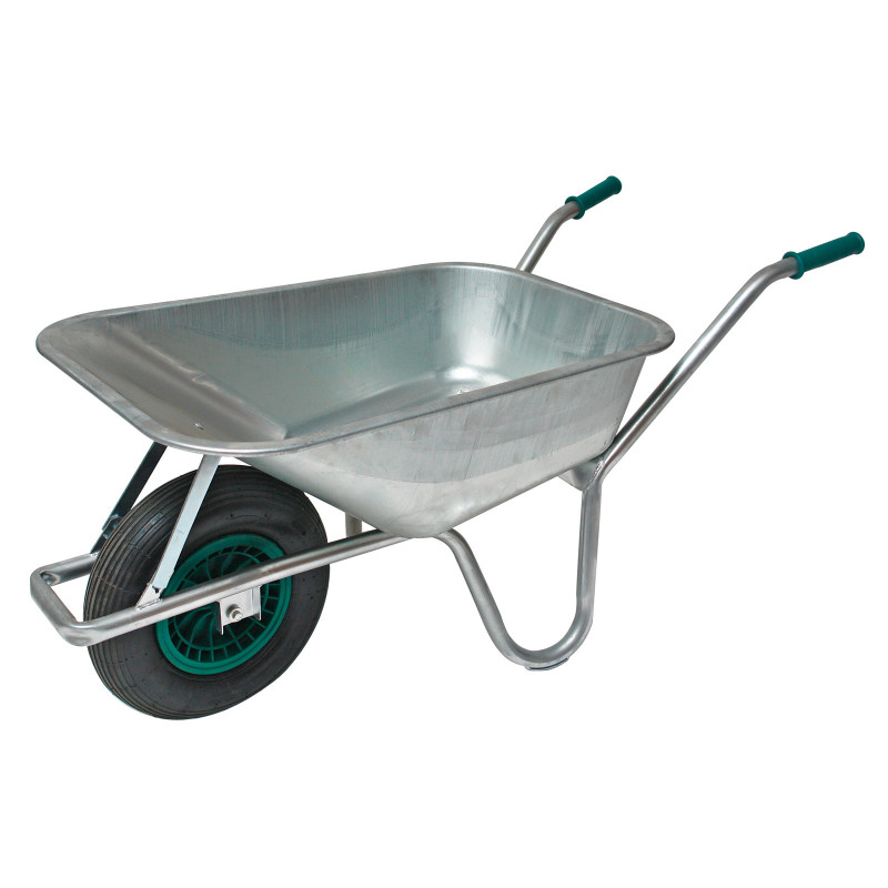 Fúrik s pozinkovaným rámom a vaňou, širokým PU kolesom s valčekovým ložiskom. Ergonomicky tvarované držadlá. Bezpečnostná hrana s dvojitým lemom. Dodáva sa v demonte.