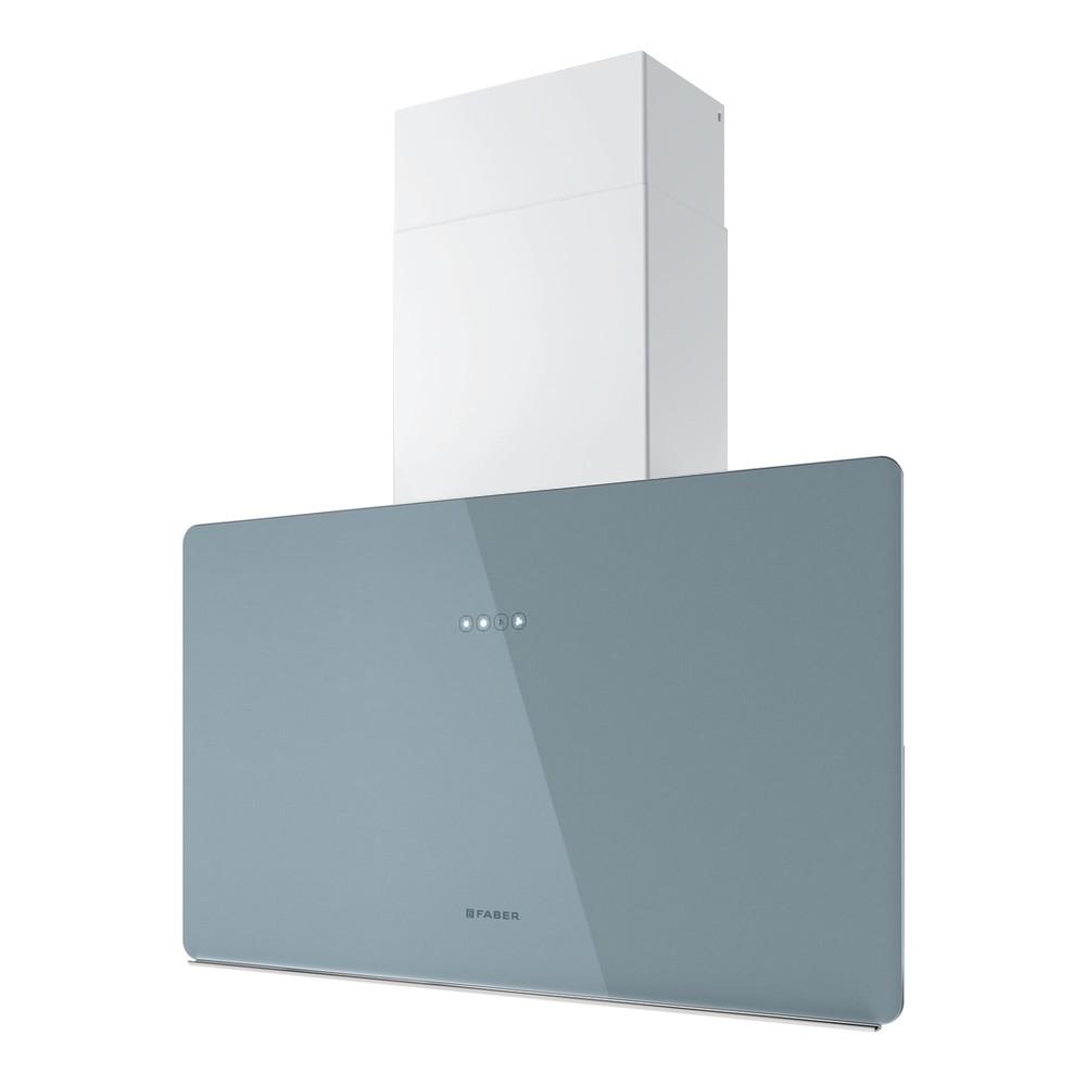 474.80 Atraktívny a prirodzene minimalistický nástenný odsávač pár GLAM FIT ZERO DRIP s rovným panelom z popolovo modrého skla (RAL 240 60 15) vyžaruje eleganciu v každom detaile. Jeho čisté línie ukrývajú exkluzívnu technológiu FABER NAUTILUS - plochú ventilačnú jednotku, ktorá umožňuje mimoriadne plochý vzhľad odsávača.