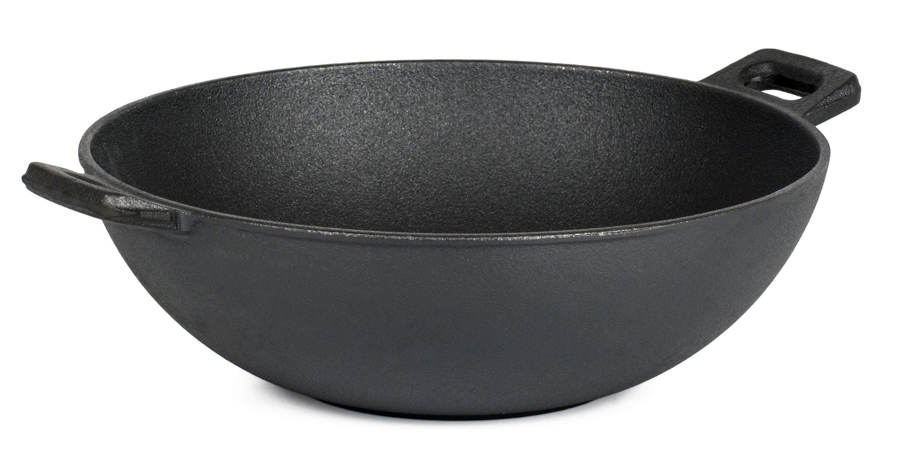 : G21Prémiový grilovací wok z poctivej liatiny, priemer 24 cm, výška 8 cm, dve liatinové madlá.