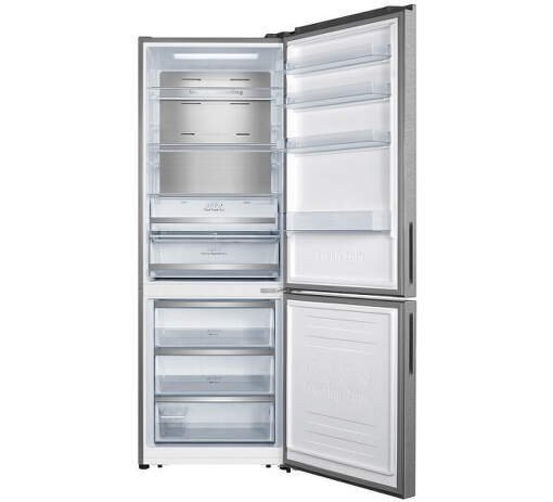 : HisenseKombinovaná chladnička Hisense RB645N4BID v nerezovom farebnom prevedení ponúka 495 litrový celkový objem. Chladiaca čast s 345 l objemom disponuje 3 sklenenými policami, držiakom na fľaše, 2 zásuvkami a dverovými policami. Mraziaca časť s kapacitou 150 l sa nachádza dole a v nej 3 zásuvky. Za 24 hodín zmrazí 6 kg potravín a pri výpadku elektriny udrží potraviny až 15 hodín. Vybavená LED displejom, zvukovým alarmom, technológiou Multi AirFlow, HumidityControl, funkciou SuperCool a režimom EcoMode. Maximálna dosahovaná hlučnosť 38 dB.