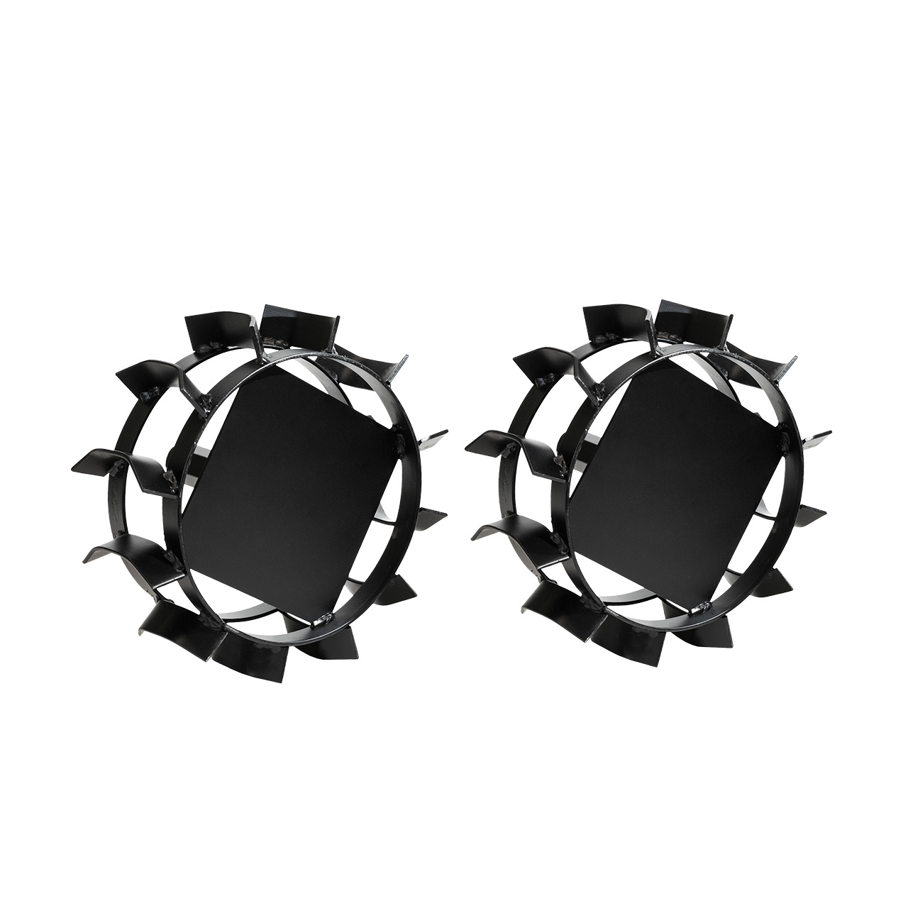 Sada oceľových kolies namontovaná namiesto okopávacích nástrojov poskytuje výrazne lepšiu trakciu pri používaní pluhov. Je stabilný, odolný, trvácny a odporúča sa najmä na časté používanie v náročných pôdach.