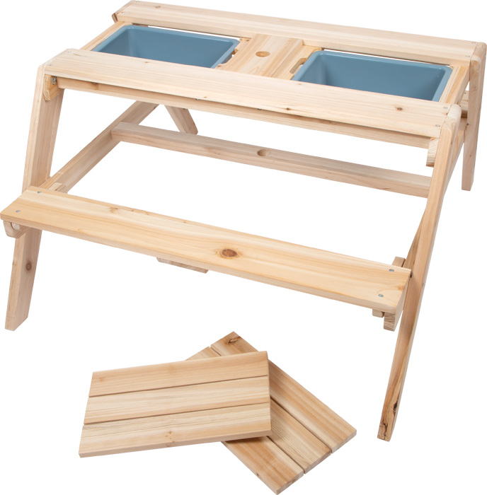 Multifunkčné posedenie 2 v 1 značky Small Foot. Úžasné miesto na hranie s pieskom, vodou alebo blatom. Dve odnímateľné vaničky s objemom 3 l. Kompaktné posedenie na terasy, balkóny a záhrady. Otvor pre slnečník. Lavice sa dajú sklopiť.