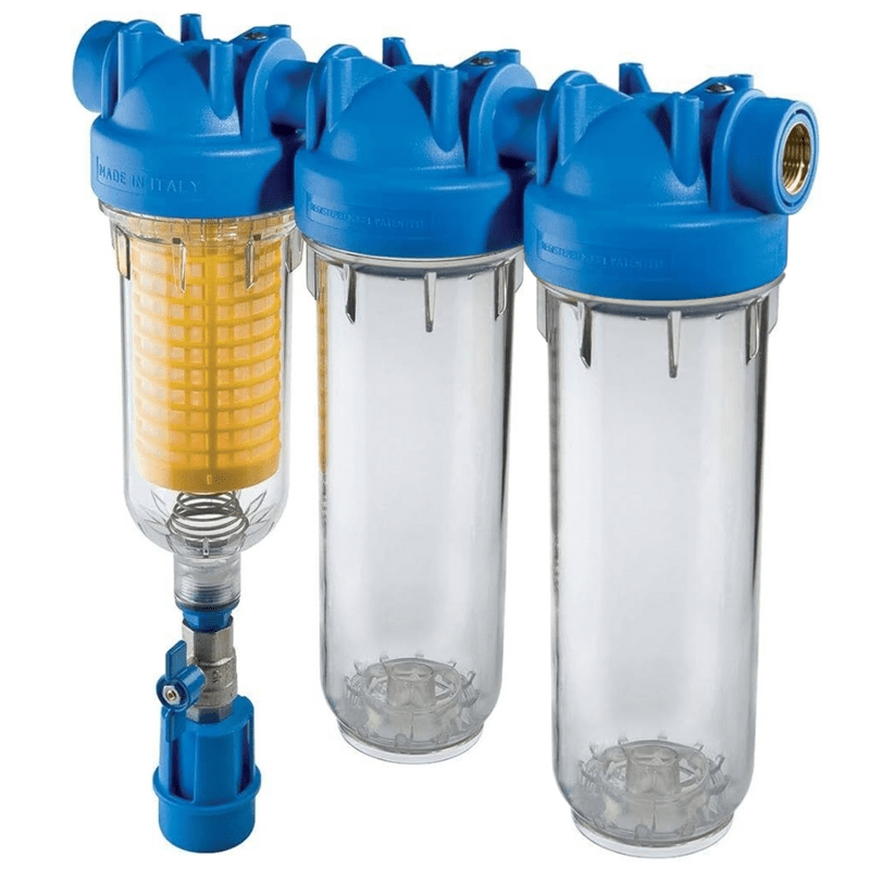 Samočistiaca jednotka na úpravu vody, ktorá umožňuje dosiahnuť vysokú úroveň čistenia vody aplikovaním samočistiaceho filtra s filtráciou 90 micronov a s dvoma prázdnymi nádobami s možnosťou zvolenia filtračných vložiek podľa potreby.