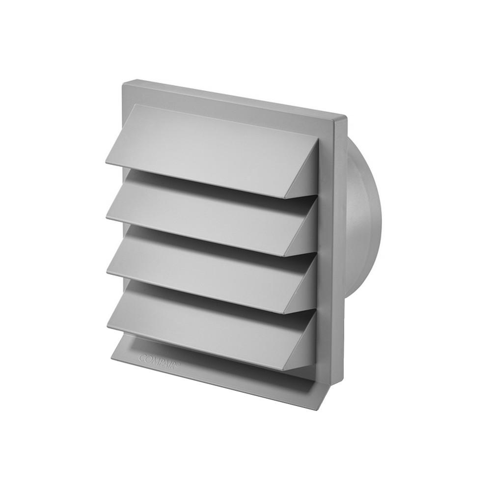 Svetlošedá plastová vonkajšia mriežka 190 x 190 mm bez spätného ventilu je určená na pripojenie na kruhové potrubie s priemerom 150 mm. Hĺbka pripojenia je 71 mm.