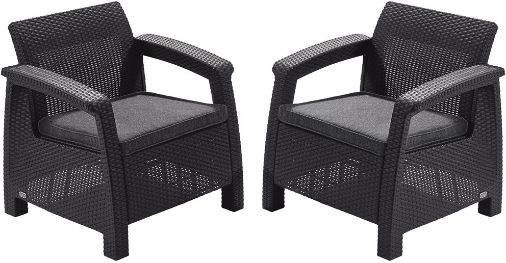 : KeterElegancia a vysoká kvalita, to je Corfu DUO. Dve pohodlné kreslá s mäkkými poduškami a skvelým dizajnom sú ideálne do malých priestorov alebo ako doplnenie akéhokoľvek setu corfu.
