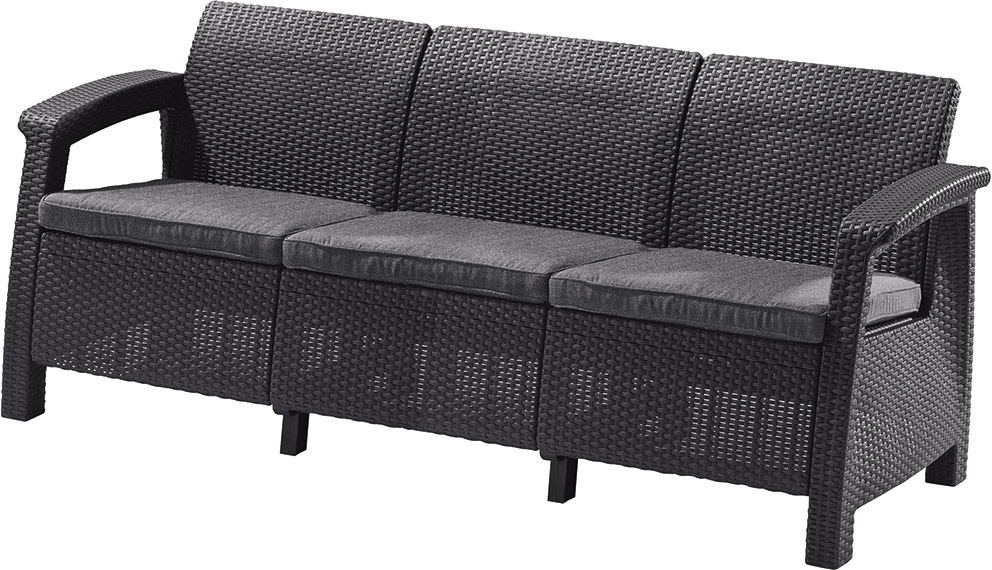 : KeterElegantná trojitá sedačka je ďalší z mimoriadne funkčnej a modernej línie Corfu. Nábytok je vyrobený z vysokokvalitných materiálov, v imitácii prírodného ratanu.