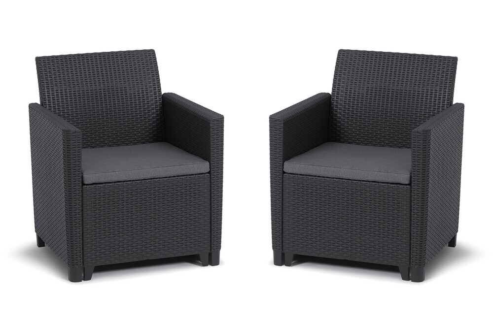 : KeterSúprava je vyrobená z lisovaného plastu v imitácii prírodného ratanu. Podušky, ktoré sú súčasťou setu, poskytujú práve ten extra kúsok pohodlia počas Vašich oddychových chvíľ.