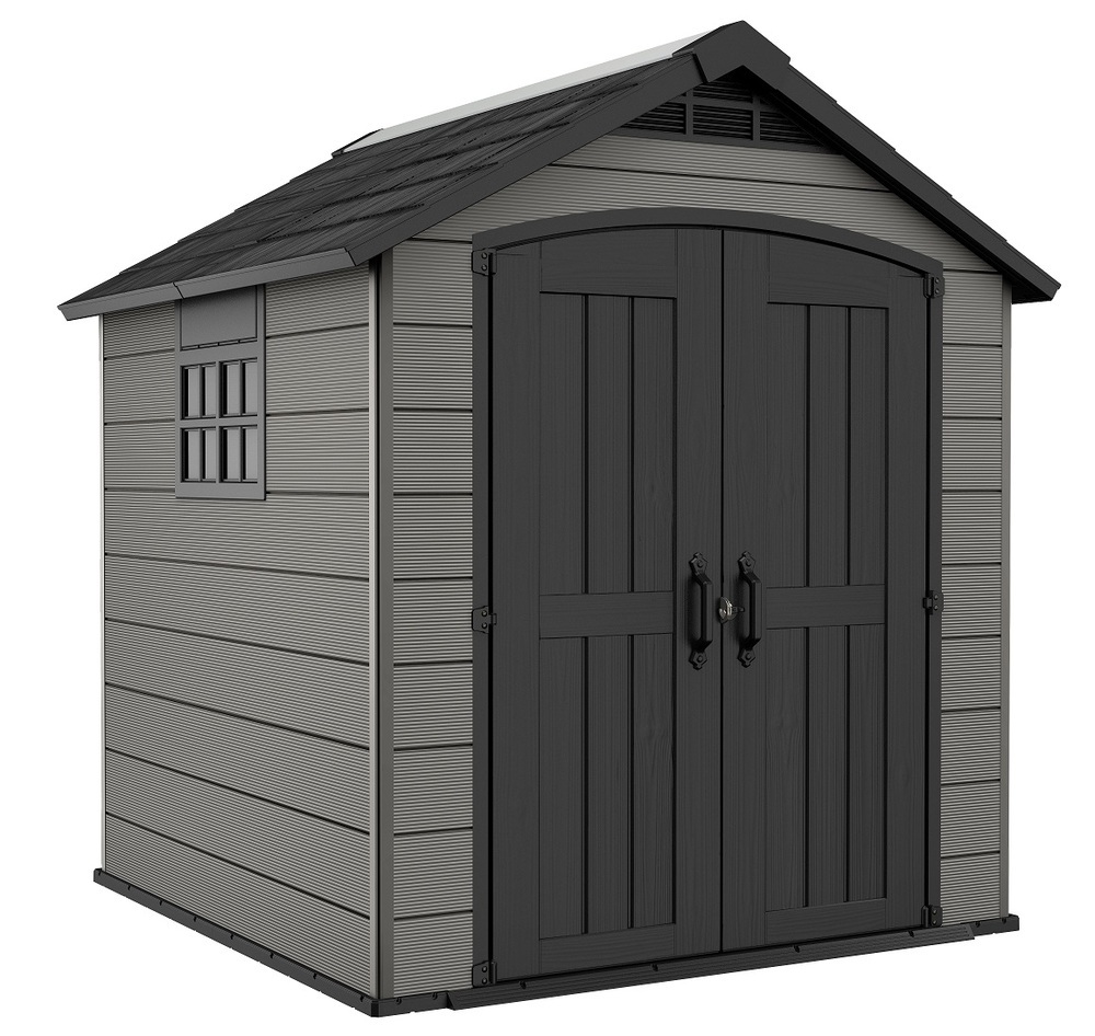 Bezúdržbový domček PREMIER má robustnú konštrukciu a je vyrobený z pevných, dvojitých, plastových stien. Je tiež vybavený pevnou dizajnovou strechou, širokými dvojitými dverami a podlahou pre náročné použitie s nosnosťou 150kg na m2.