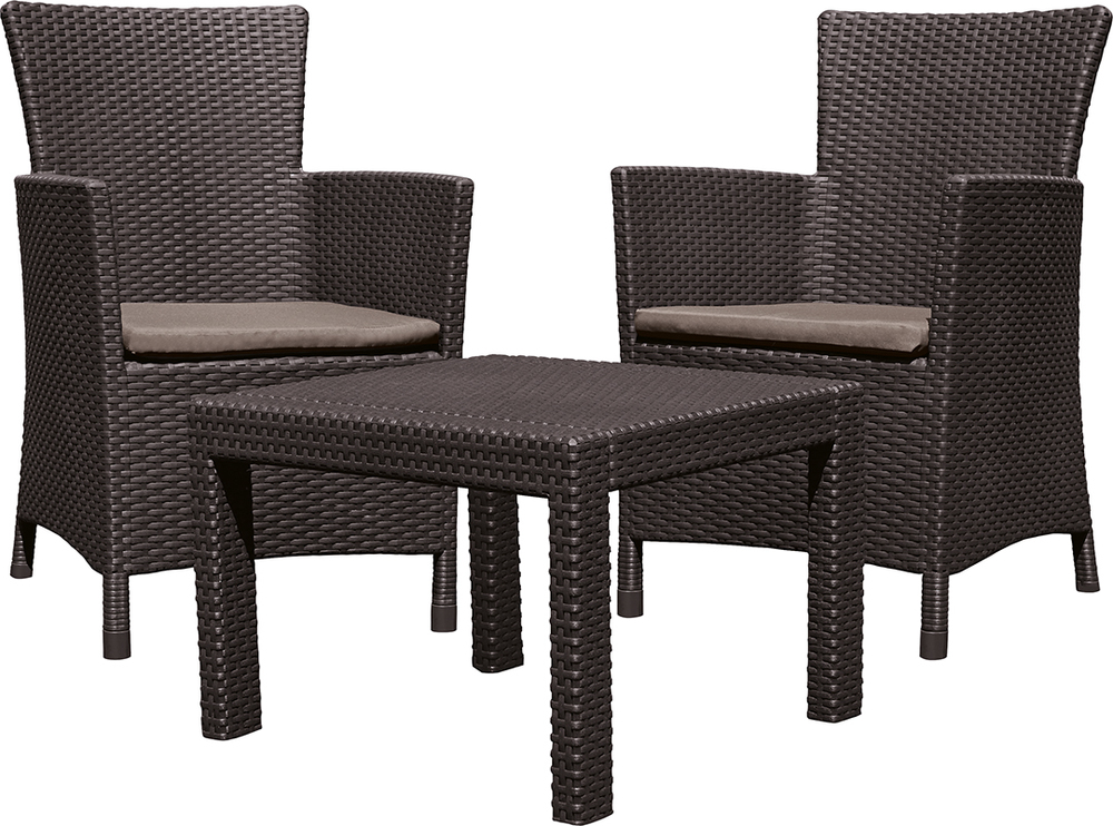 : KeterRosario balcony je menšie moderné posedenie ako von, tak do interiéru. Súprava je vyrobená z lisovaného plastu v imitácii prírodného ratanu.