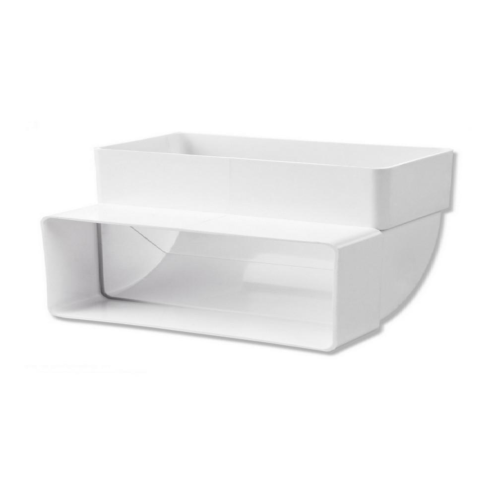 12.44 Plastové štvorcové koleno je určené na vertikálne ohýbanie plastových rúrok pod uhlom 90 stupňov jednoduchým zasunutím do seba. Koleno je vhodné do maximálnej teploty 45 °C a je vyrobené z materiálu ABS v bielej farbe.