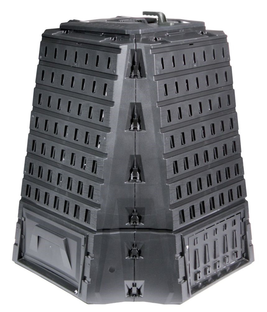: Prosperplast900l kompostér BIOCOMPO v čiernej farbe je odolný vplyvom počasia. Nemá dno, aby priamy styk s pôdou umožnil voľný prístup červom a dážďovkám podieľajúcich sa na tvorbe humusu. Zaberie minimálny priestor a veľmi ľahko ho zložíte.