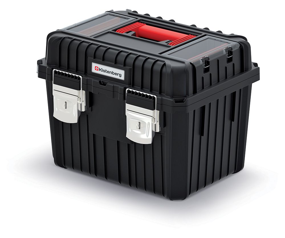Kufrík na náradie s kovom. HEAVY zámky 445x360x337 mm (priehradky vo veku) - farba: čierna