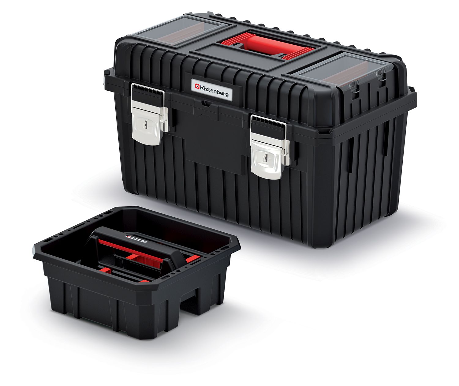 Kufrík na náradie s kovom. HEAVY zámky 585x360x337 mm (priehradky vo veku) - farba: čierna