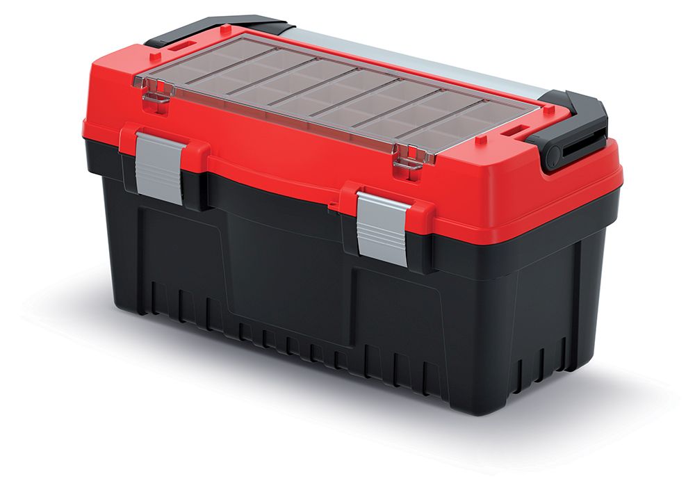 14.77 Kufrík na náradie s kovovou rukoväťou a zámkami EVO 548x274x286 mm (boxy) - červený