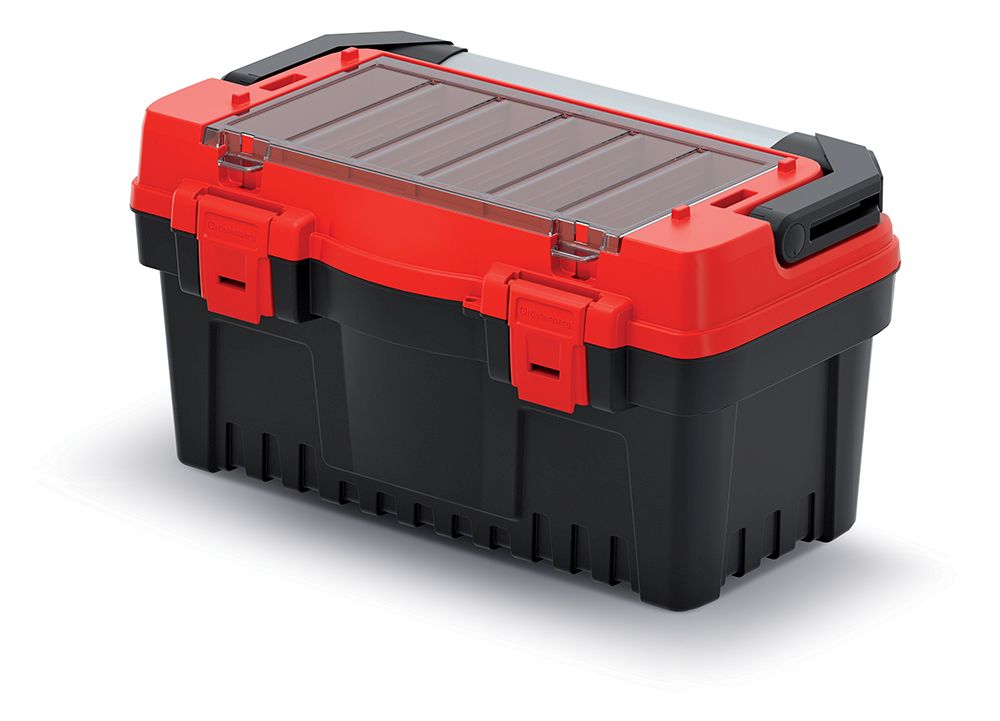 11.87 Kufrík na náradie s kovovou rukoväťou EVO 476x260x256 mm (prepážky) - farba: červená