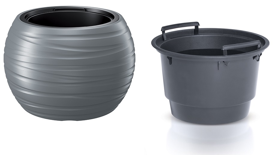7.68 Kvetináč MAZE okrúhly s vložkou 39,6 cm - farba: sivý kameň