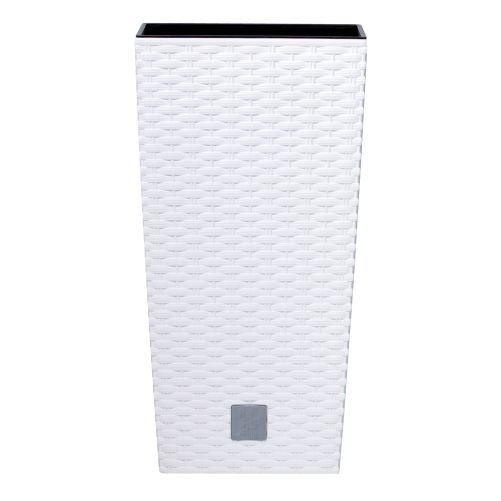 : ProsperplastKvetináč do interiéru aj exteriéru, objem 11,4 l, zaujímavý dizajn - imitácia ratanu, plast, rozmery 20 x 20 x 37,6 cm, farba biela.