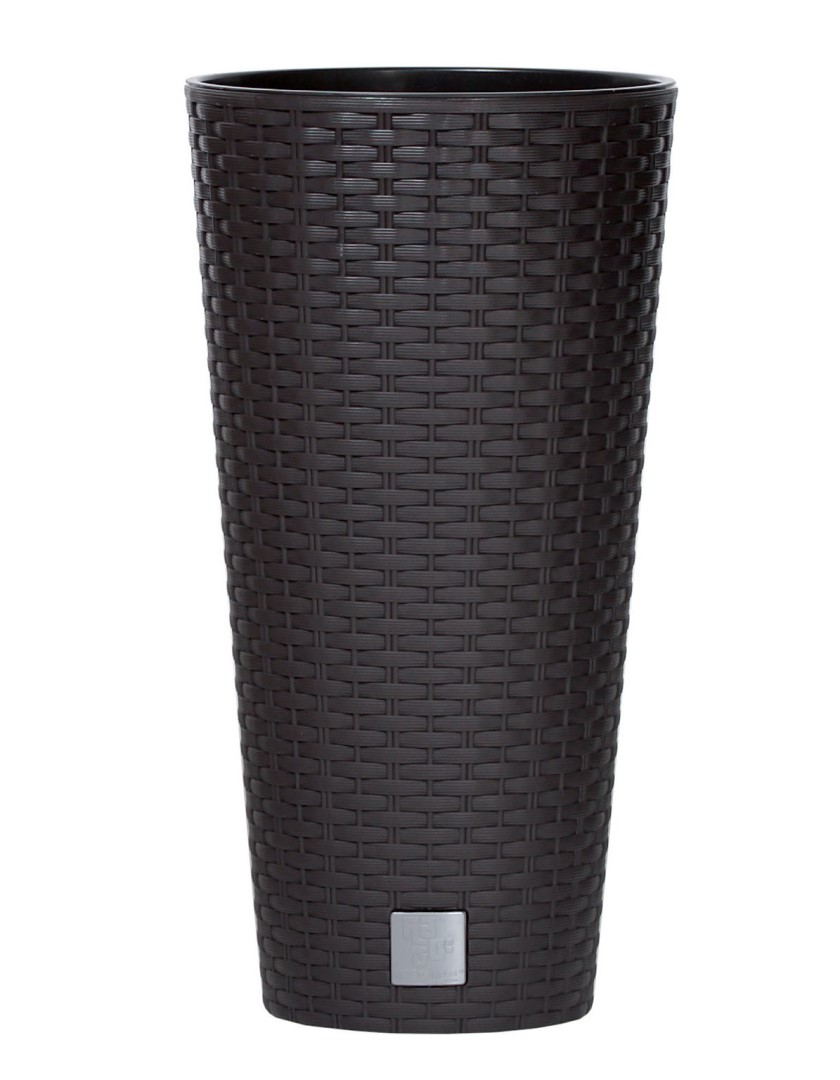 : ProsperplastKvetináč s plastovou vložkou, objem 15,5 l, design so zaujímavou textúrou, vhodný do exteriéru aj interiéru, odolný voči UV žiareniu. Rozmery 25 x 47,6 x 25 cm, hnedá farba.