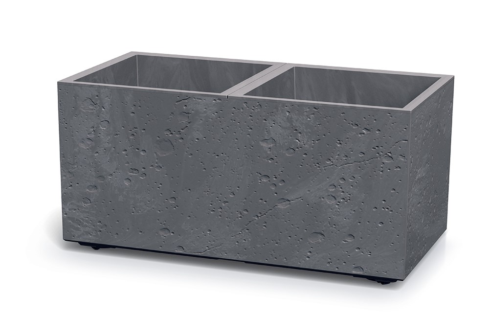 : ProsperplastModulárny kvetináč pre vnútorné aj vonkajšie priestory, kvalitné plastové prevedenie, štýlový dizajn napodobňujúci betón. 2 vnútorné priestory s vnútornými vložkami oddelené prepážkou, stohovateľná konštrukcia, kolieska pre ľahké premiestňovanie.