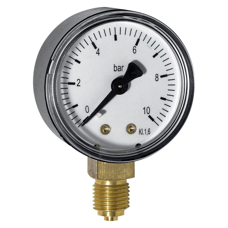 Manometer slúži na meranie tlaku v systéme. má celokovové telo.