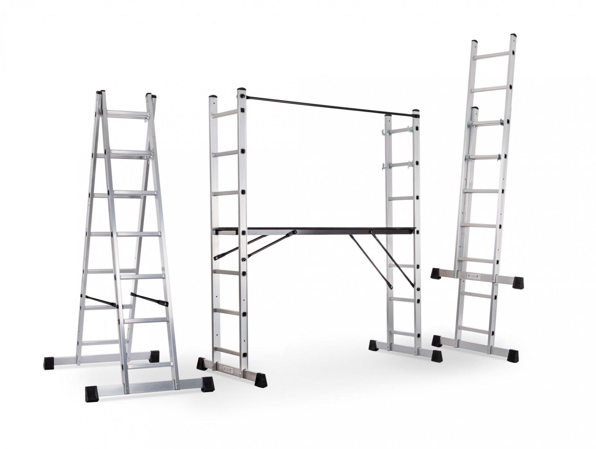 : G21Multifunkčné lešenie G21 Handrail má rôzne kombinácie využitia. Môžete ho použiť ako samostatný rebrík s rôznymi dĺžkami, rebrík a lešenie (s veľkosťou plošiny 159 x 40 cm), ktoré má 2 stabilné oporné nohy. Lešenie je vybavené bezpečnostným zábradlím.