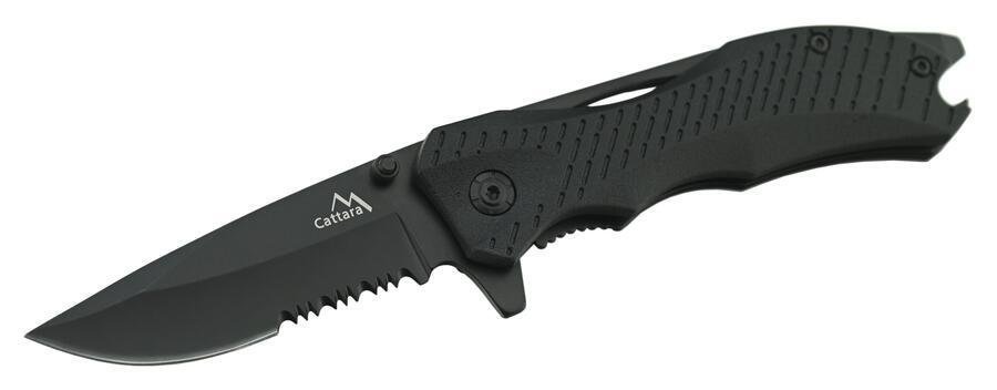 : CattaraKompaktný zatvárací nôž s poistkou, rýchle otvorenie jednou rukou pomocou výstupku na čepeli, kvalitná nožiarska oceľ SS 420, ergonomická rukoväť, otvárač na fľaše a úderník na sklo. Čierna farba.