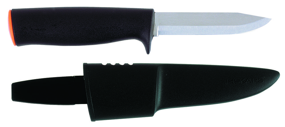 : FiskarsUniverzálny nôž pre široké použitie s plastovým krytom (pošvou).