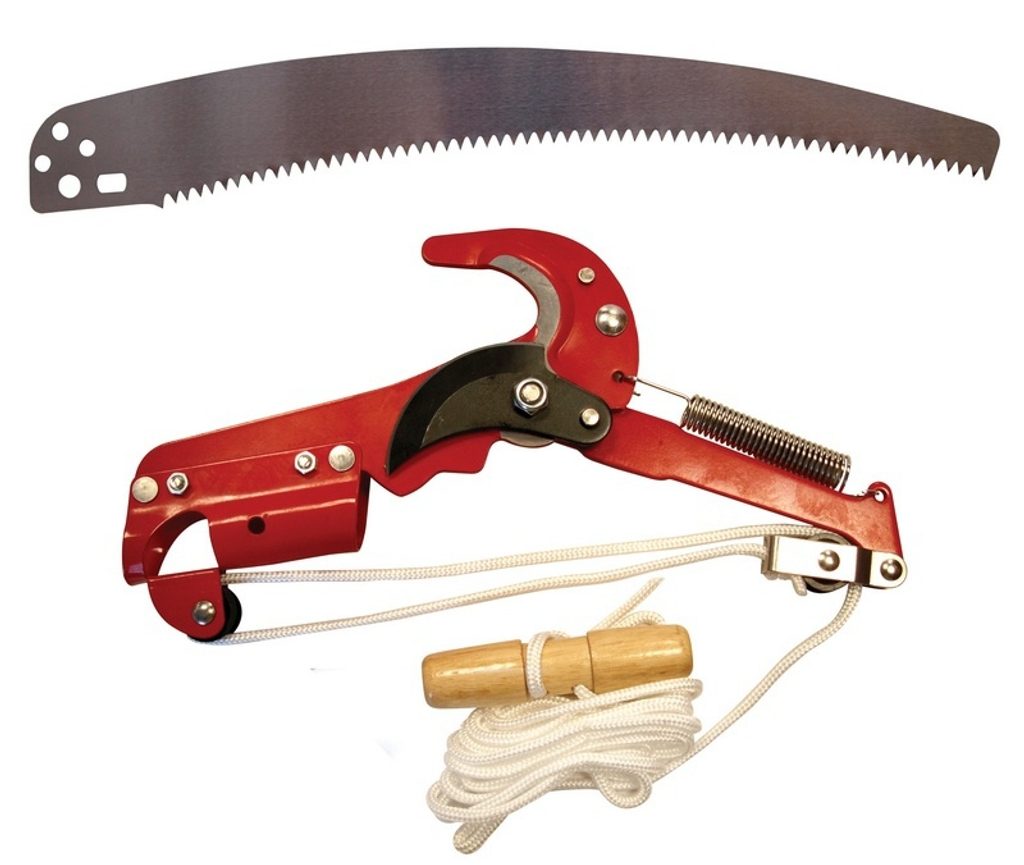 Oceľové nožnice kombinované s vyvetvovacou pílou, dodávané bez násady pre strih a prierez konárov vysokých stromov. Pre použitie je nutné nástroj osadiť na vhodnú násadu.