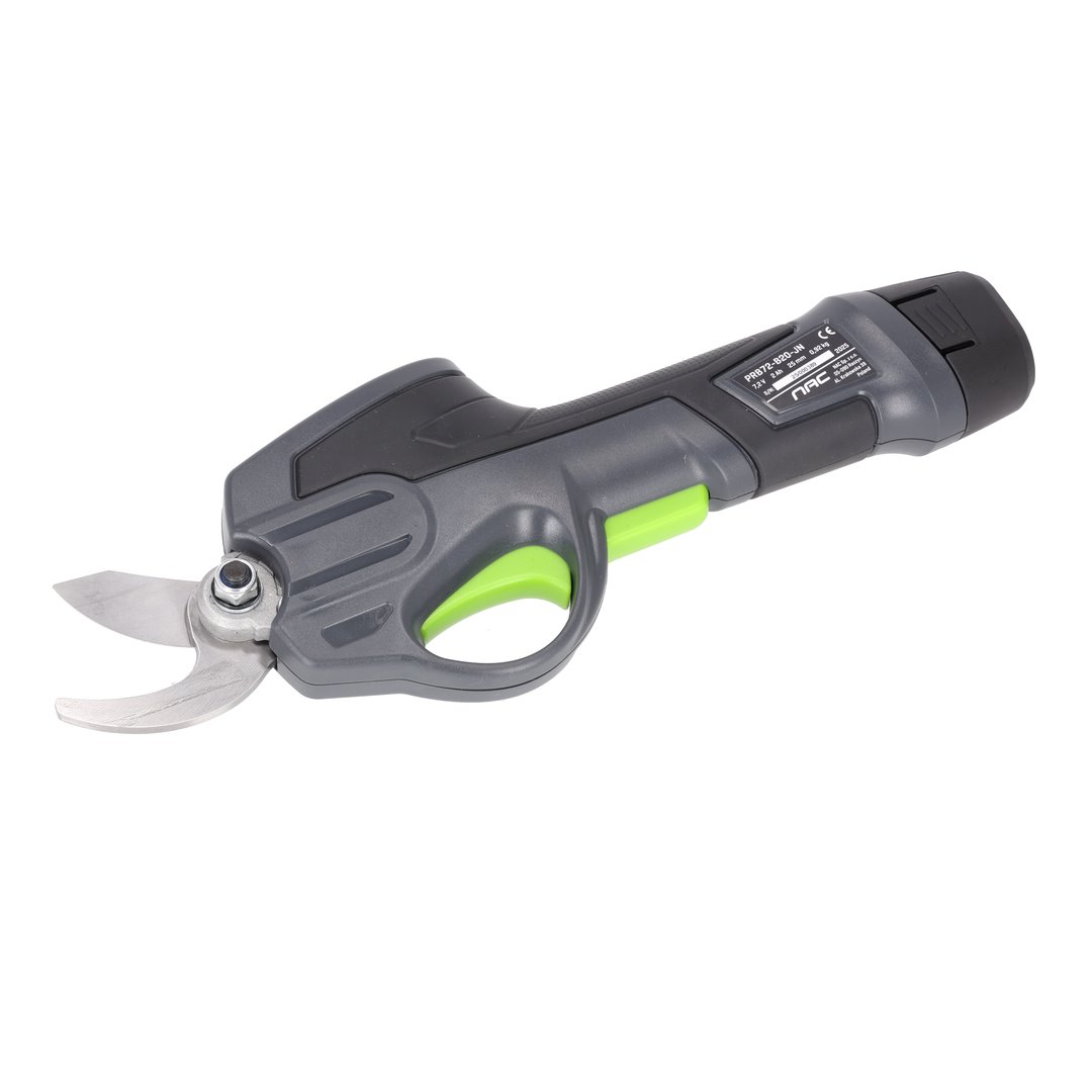 Aku nožnice na vetvy, akumulátor 7,2 V Li-Ion, strih vetiev 18 mm, otvorenie čepelí 25 mm, až 800 strihov, hmotnosť 0,92 kg.