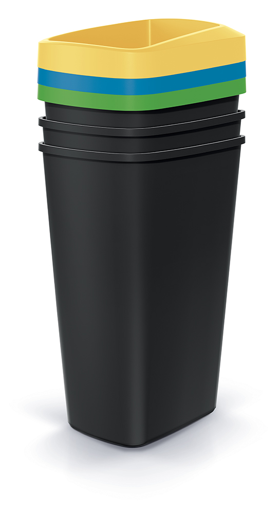 Odpadkový kôš COMPACTA Q DROP SET - objem: 3x45 l, farba: recyklovaná čierna