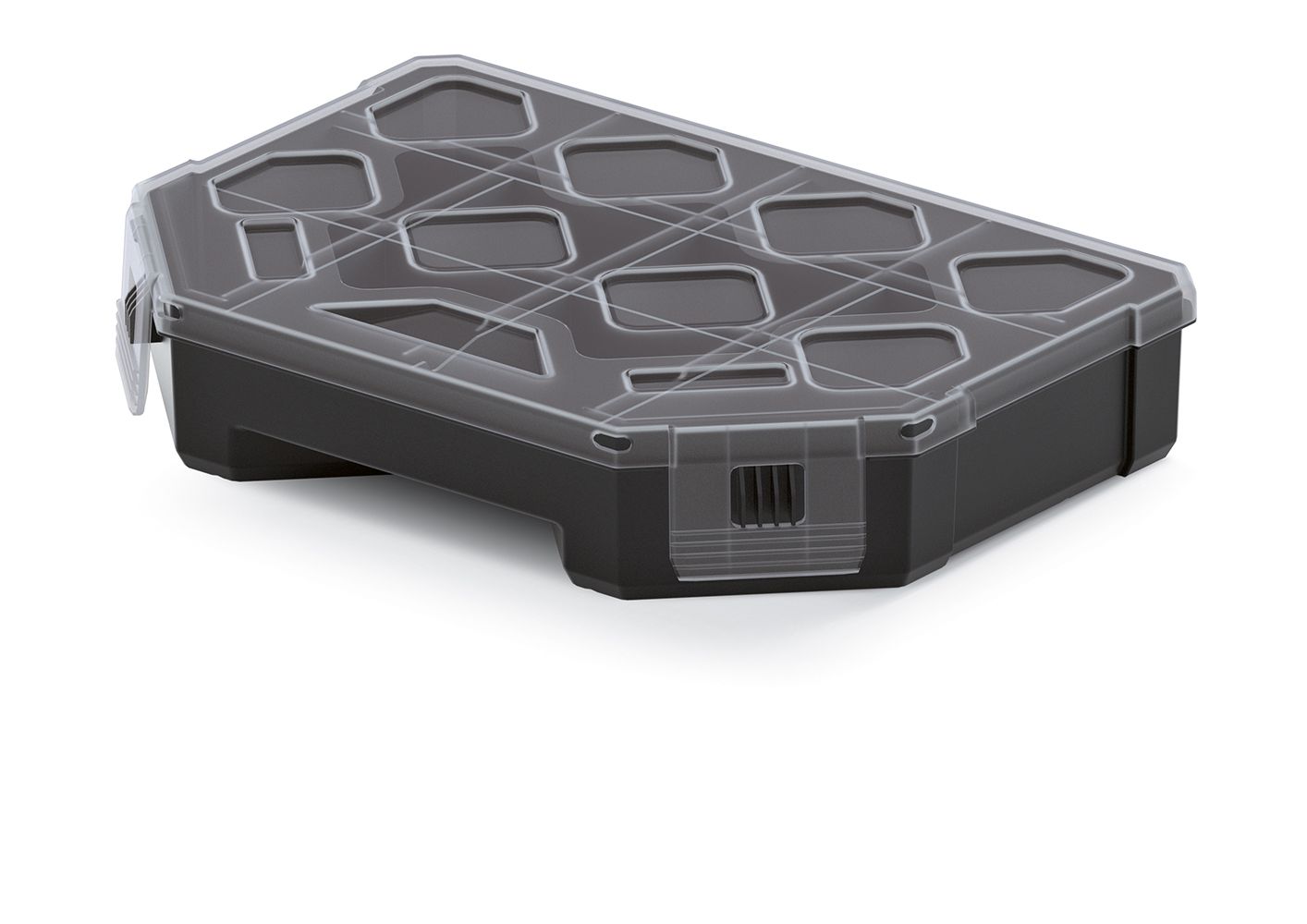 Organizér TAGER (priehradky) 195x142x40 mm - farba: čierna s priehľadným krytom