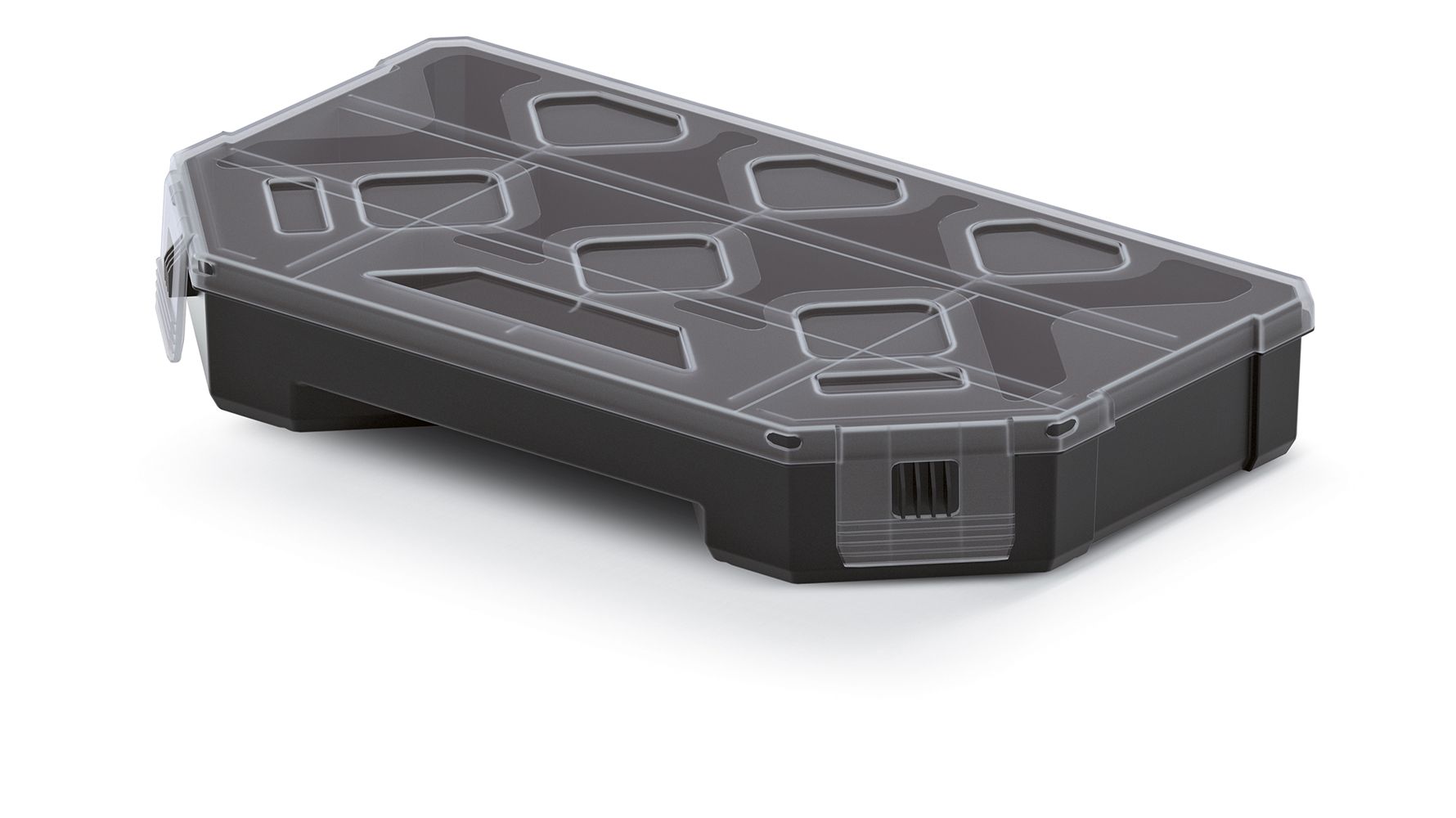 1.06 Organizér TAGER (priehradky) 243x142x40 mm - čierny s priehľadným vekom