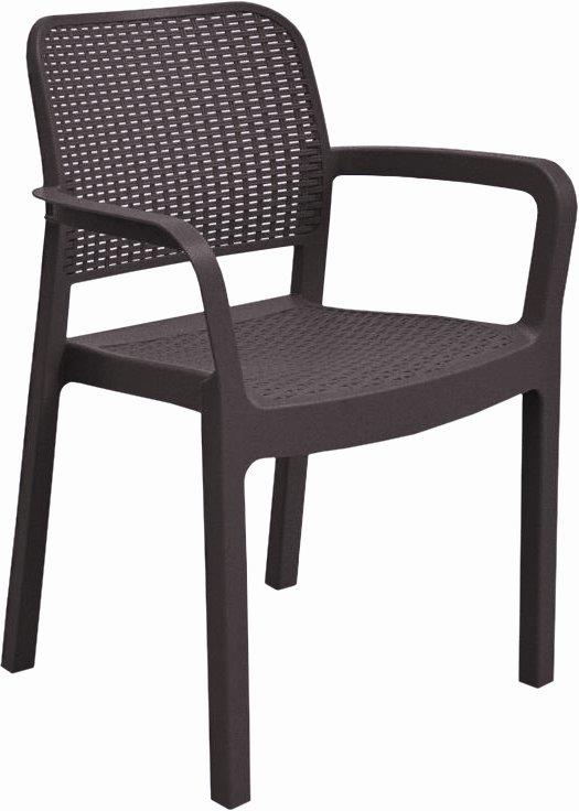 : KeterNízkoúdržbová záhradná stolička, maximálna nosnosť až 110 kg, vysoká odolnosť voči rôznorodým vplyvom, ergonomicky profilované operadlo, stabilné podrúčky, stohovateľný dizajn pre ľahké uskladnenie. PP živice. Vysoko stála hnedá farba.