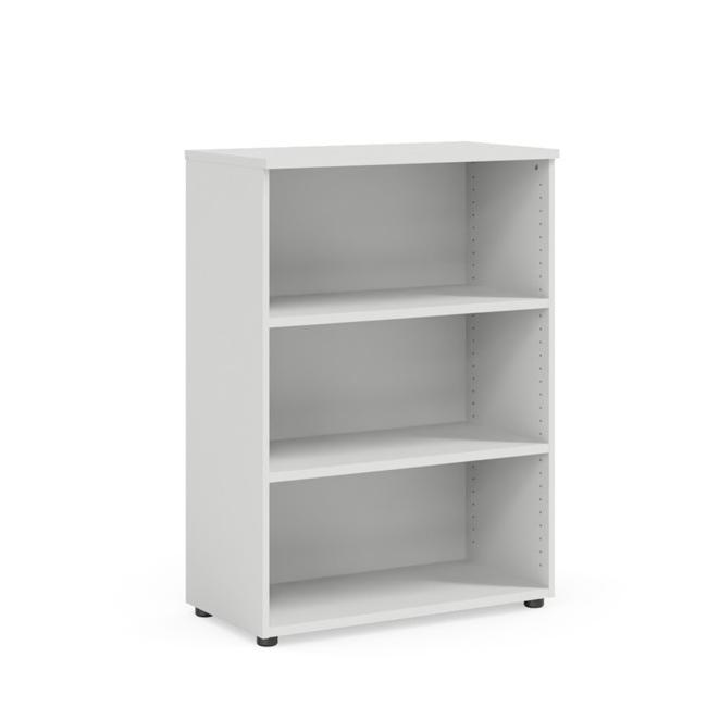 : BASICPolicová skriňa BASIC, 2 police, otvorená, 80x40x111,7cm, biela Popis produktu• Kancelársky nábytok BASIC sa vyrába z kvalitnej laminovanej drevotriesky/ L-DTD/ hrúbky 22 mm a 16 mm s ochrannou ABS hranou odolnou voči oderu • Skrine majú výšku od 75,3 cm do 182,1 cm a šírku od 40 cm do 100 cm • Všetky skrine majú hĺbku 40 cm. Vnútorné police majú nosnosť max.